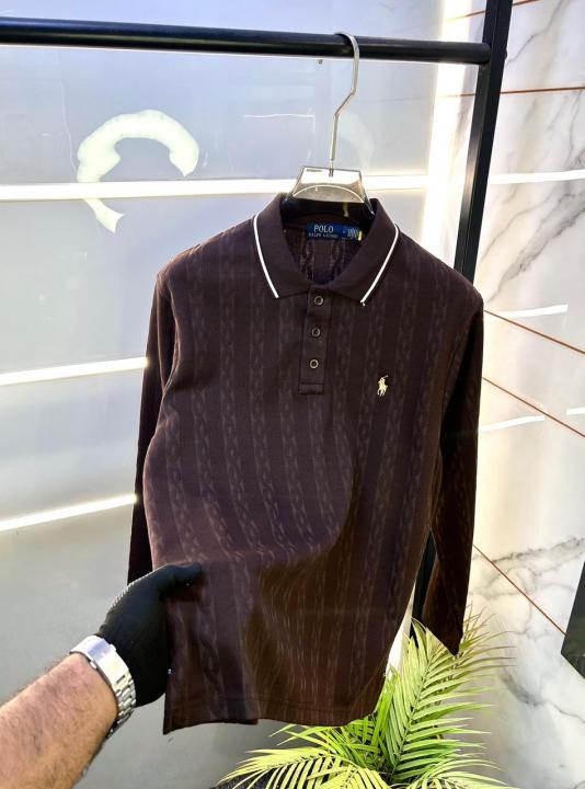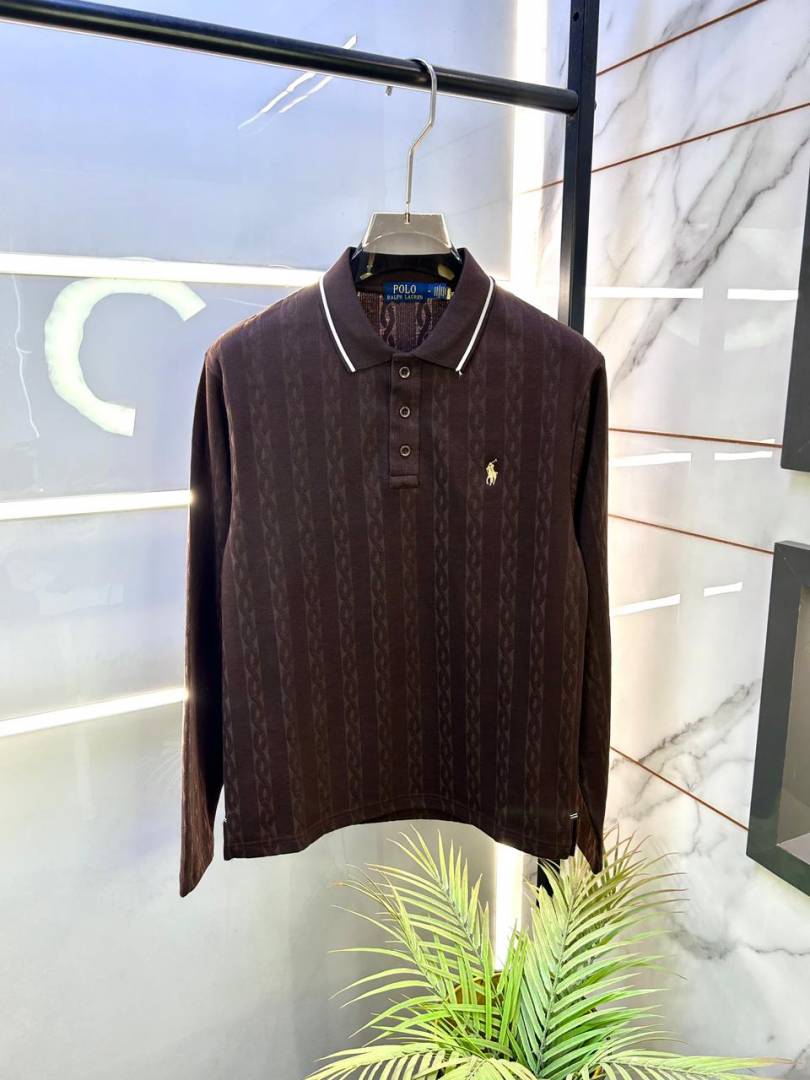 Ralph_Lauren Dark Brown Knitted Full Sleeves Premium Collar T-shirt F2989-DBR