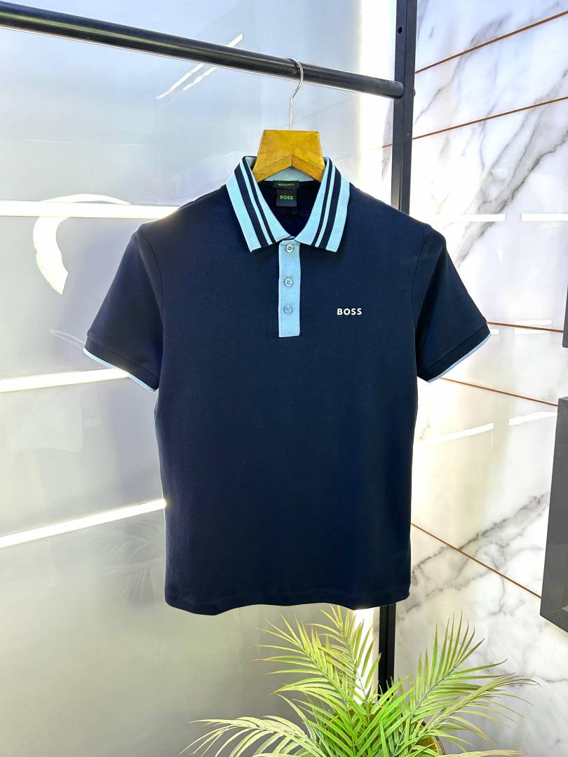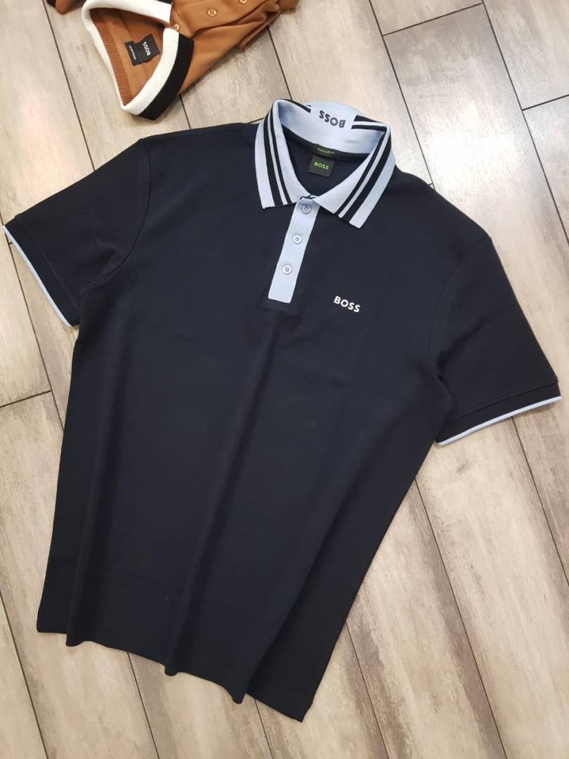 Sale Hugo_Boss Navy Polo Premium Collar Neck T-shirt F2651-N2