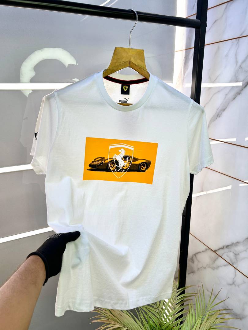 Sale Pum a Ferrari Edition White Round Neck Premium T-shirt F2330-WH